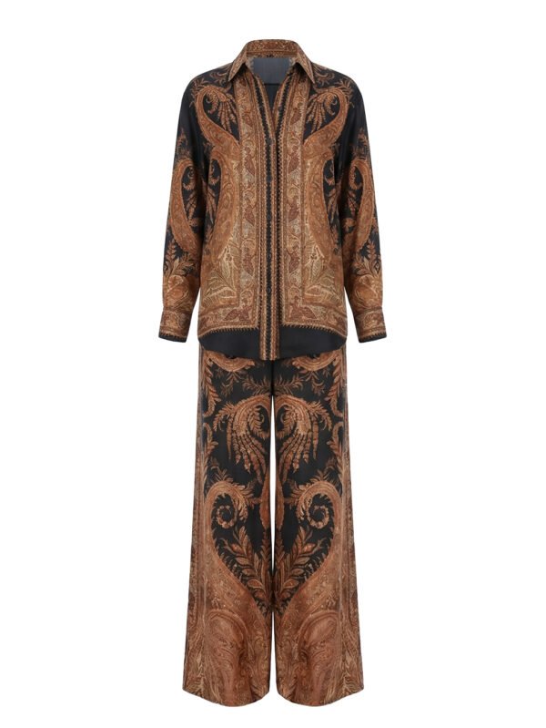 بدلة عملية وعصرية للاستخدام اليومي، مصنوعة من حرير طبيعي 100% عالي الجودة. تصميم البنطلون واسع ومريح مع خصر مطاطي من الخلف وحواف ناعمة لتوفير الراحة والملاءمة المثالية. خامتها غير متمدد تحافظ على الشكل وتضفي لمسة أنيقة وعصرية لمظهرك اليومي.