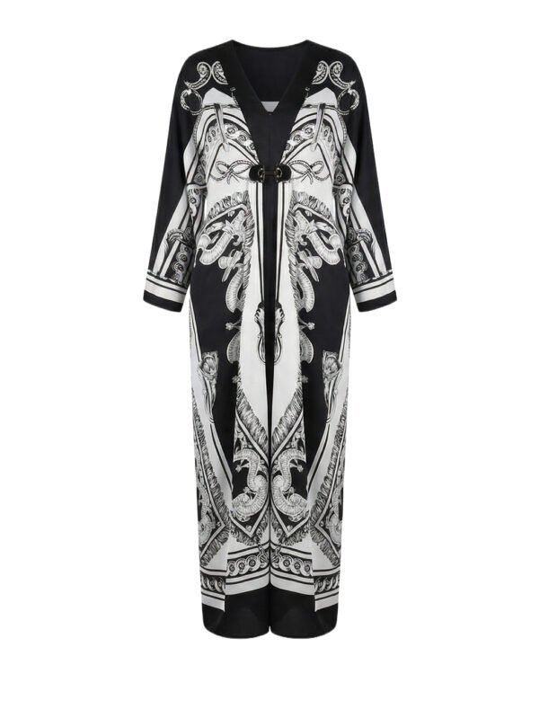 التصميم: طويل، أكمام طويلة، حزام جلد