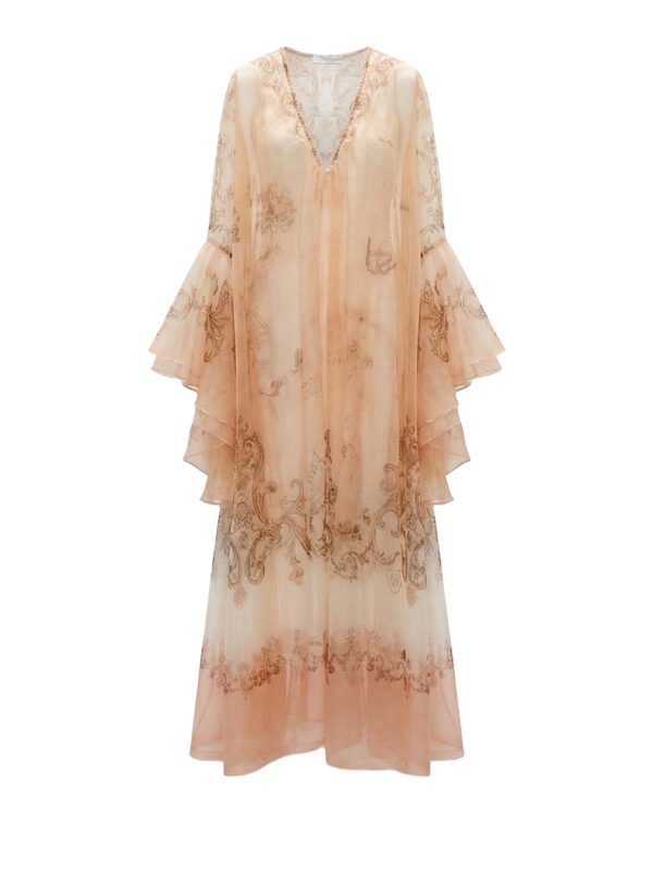 الإضافات: طبقة داخلية حرير، أكمام طويلة وواسعة، ياقة دانتيل