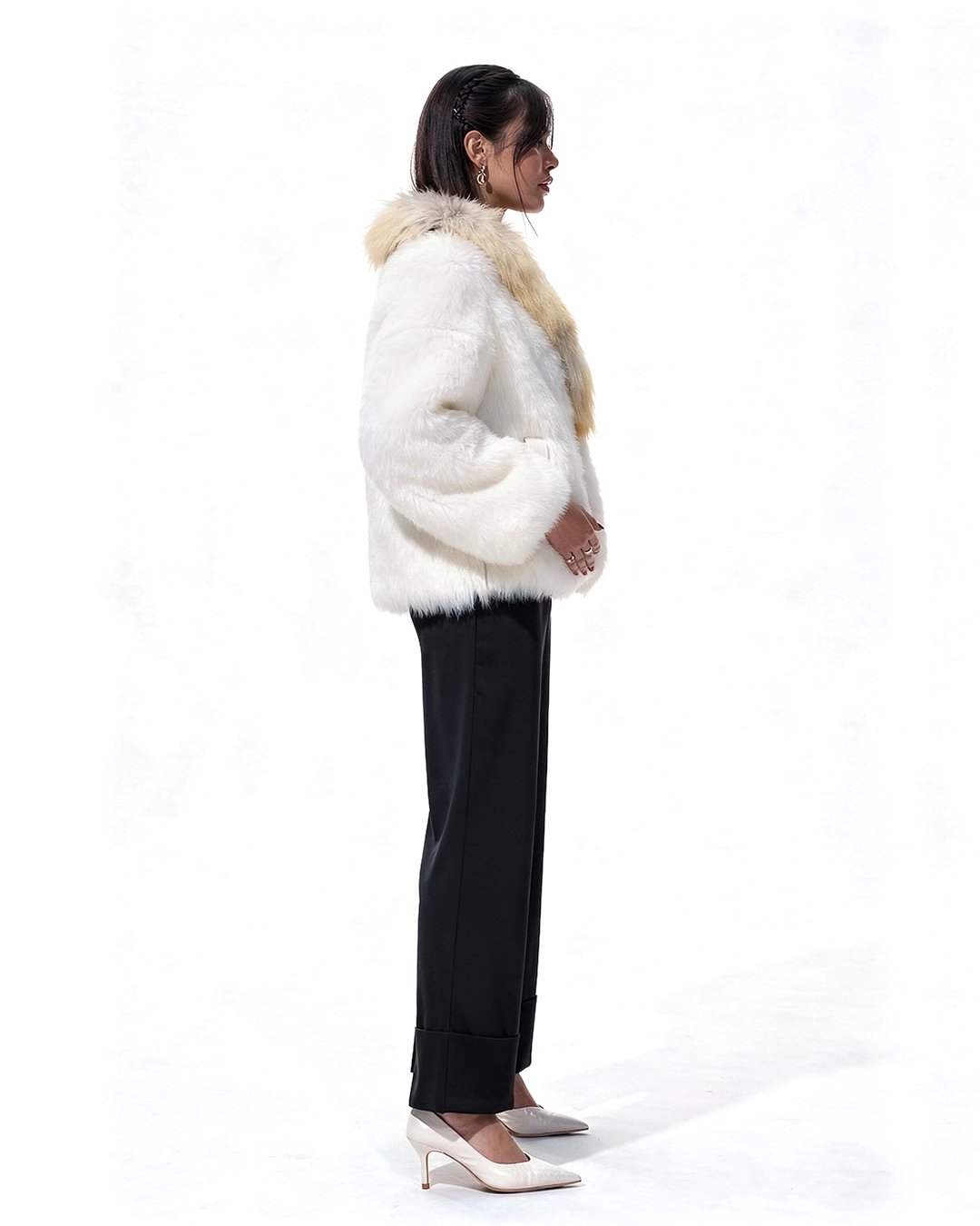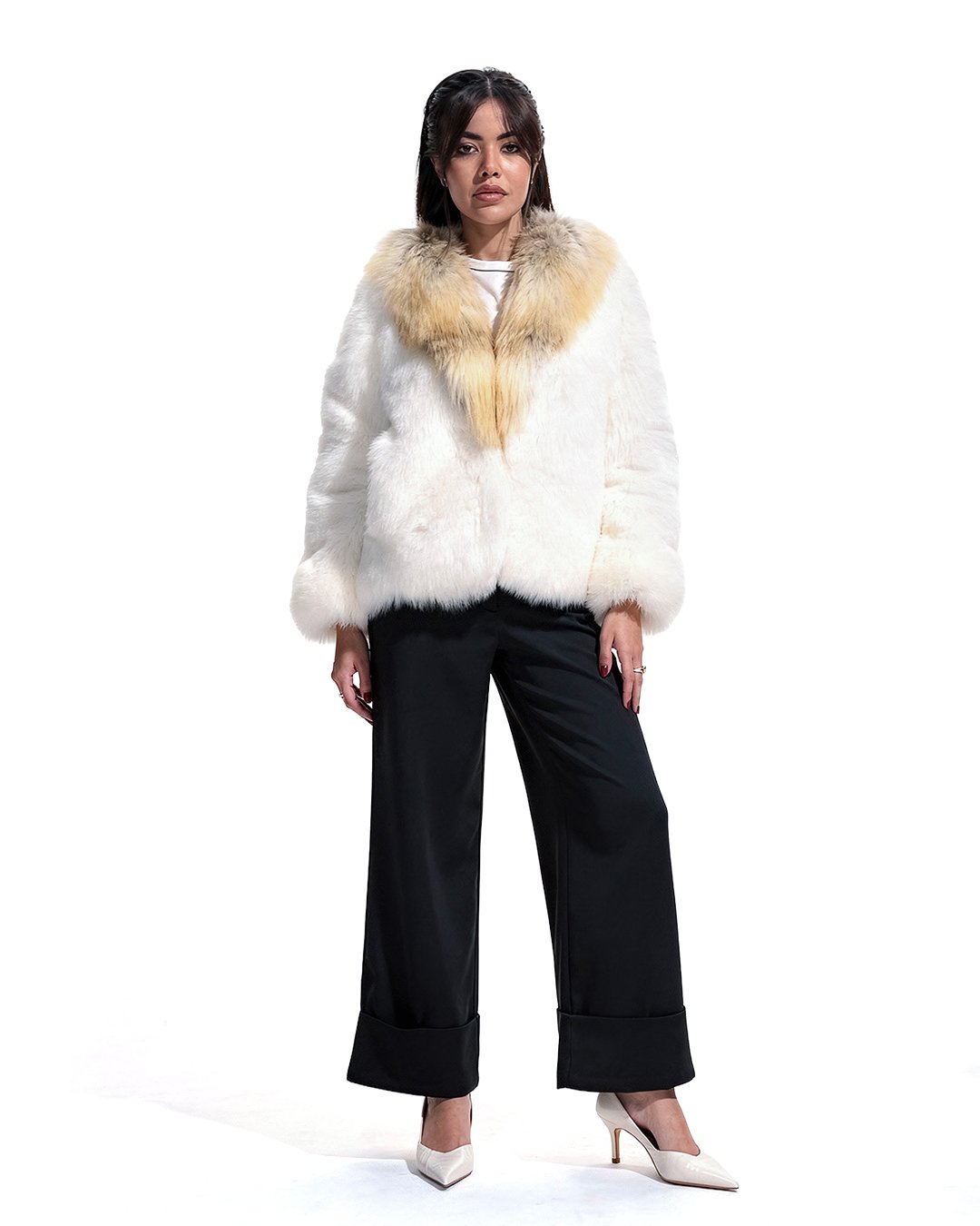 جاكيت أنيق ومريح للسفر، مصنوع من فرو معتمد طبيعي 100% عالي الجودة. تصميمه واسع وثقيل مع أكمام طويلة لتوفير أقصى درجات الراحة والحماية، وخامته غير متمدد للحفاظ على الشكل والأناقة طوال اليوم.